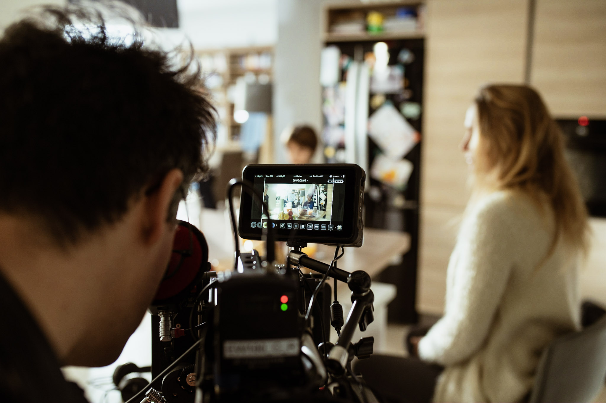 Les équipes techniques et artistiques collaborent pour réaliser des tournages professionnels et capturer des images de qualité cinématographique, que ce soit en studio (avec ou sans fond vert), dans vos locaux ou en extérieur.